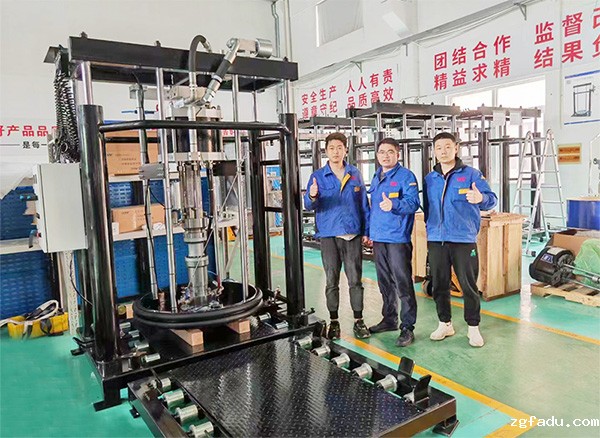 技术研发部加班安装调试批量1000L四立柱打胶升降机
