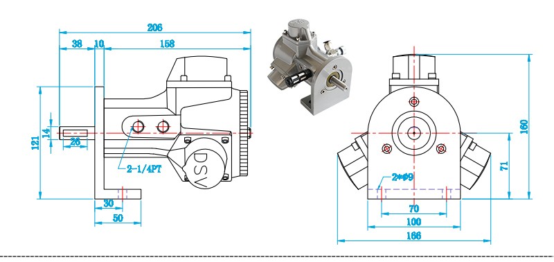 雷竞技newbee官网赞助商活塞式气动马达DAM3-L卧式安装款