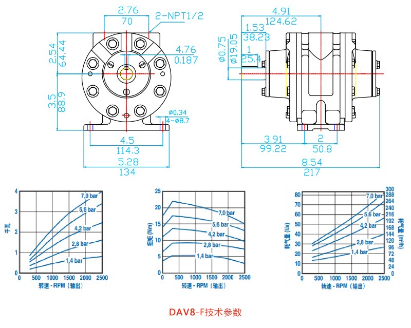 雷竞技newbee官网赞助商叶片式气动马达DAV8-IEC(国标法兰)