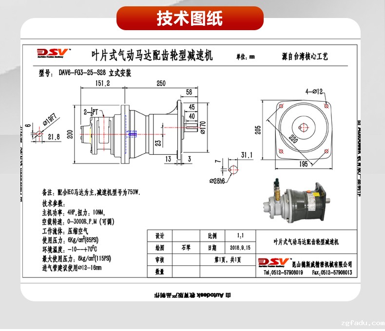 气动马达功率:1/8-1.5HP可选配